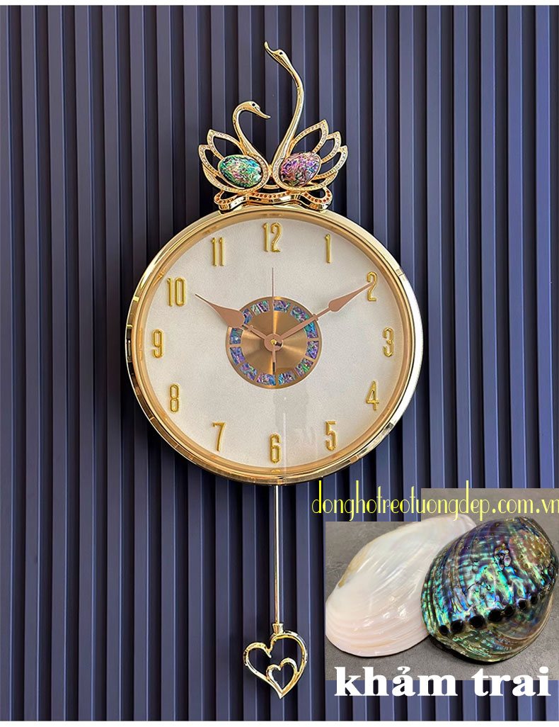 AnGia Decor giới thiệu mẫu đồng hồ treo tường quả lắc TPHCM cao cấp mã DHD161, một sản phẩm nổi bật với thiết kế sang trọng và bền đẹp, được rất nhiều khách hàng tại TP.HCM yêu thích. Mẫu đồng hồ này được làm từ chất liệu hợp kim sáng bóng, bền bỉ, với điểm nhấn đặc biệt là hình đôi thiên nga trên đỉnh đồng hồ, tượng trưng cho hạnh phúc vĩnh hằng. Điểm nổi bật của sản phẩm là lớp khảm trai cao cấp, mang lại vẻ đẹp tinh tế và đẳng cấp.